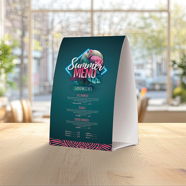 Standout table toppers — perfect for showcasing special offers or menus.